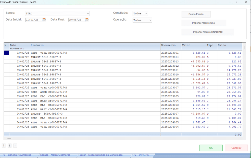 A partir dessa versão foi inserido um F11 na tela de extrato de contas para poder marcar todos ou desmarcar.