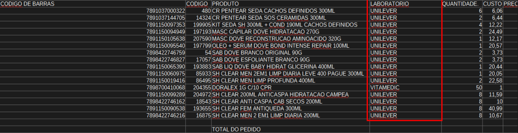 2) Ao marcar os pedidos e pressionar CTRL + F2, será exportado para EXCEL o laboratório dos produtos.